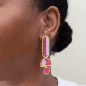 Lanie - Pink Gold Colorful Acrylic Dangle Statement Earrings
