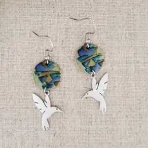 Alcohol Ink Stainless Steel Hummingbird Drop Earrings