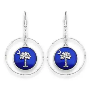 Show off your love for South Carolina by wearing our Campus Chic Palmetto Moon Earrings. This simple charm shows off the Palmetto tree and crescent moon that has become the symbol of South Carolina. These earrings feature a simple iridescent charm with a blue background. The fish hook hoop earrings help draw attention to our charm.