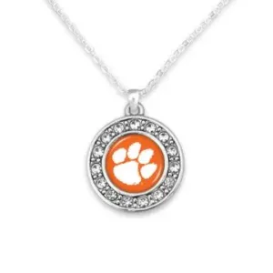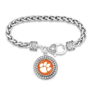 The Allie Clemson Tiger jewelry collection is sweet and simple with a touch of bling! Featuring the Clemson Tiger logo with a rope and crystal charm edge, this stylish bracelet is the perfect jewelry to wear tailgating. The Clemson Tiger bracelet is a mesh link with a braided lobster clasp closure. All items are made from zinc alloy and are sealed with a anti-tarnish coating.