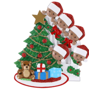 Dark Skin Peeking Family Christmas Ornament - 5