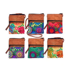 Small Embroidered Floral Leather Purse Passport Bag